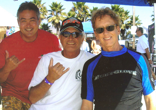 Kenji and Jack hangin' out with legendary surfer David Nuuhiwa, Ventura Point, 2007.